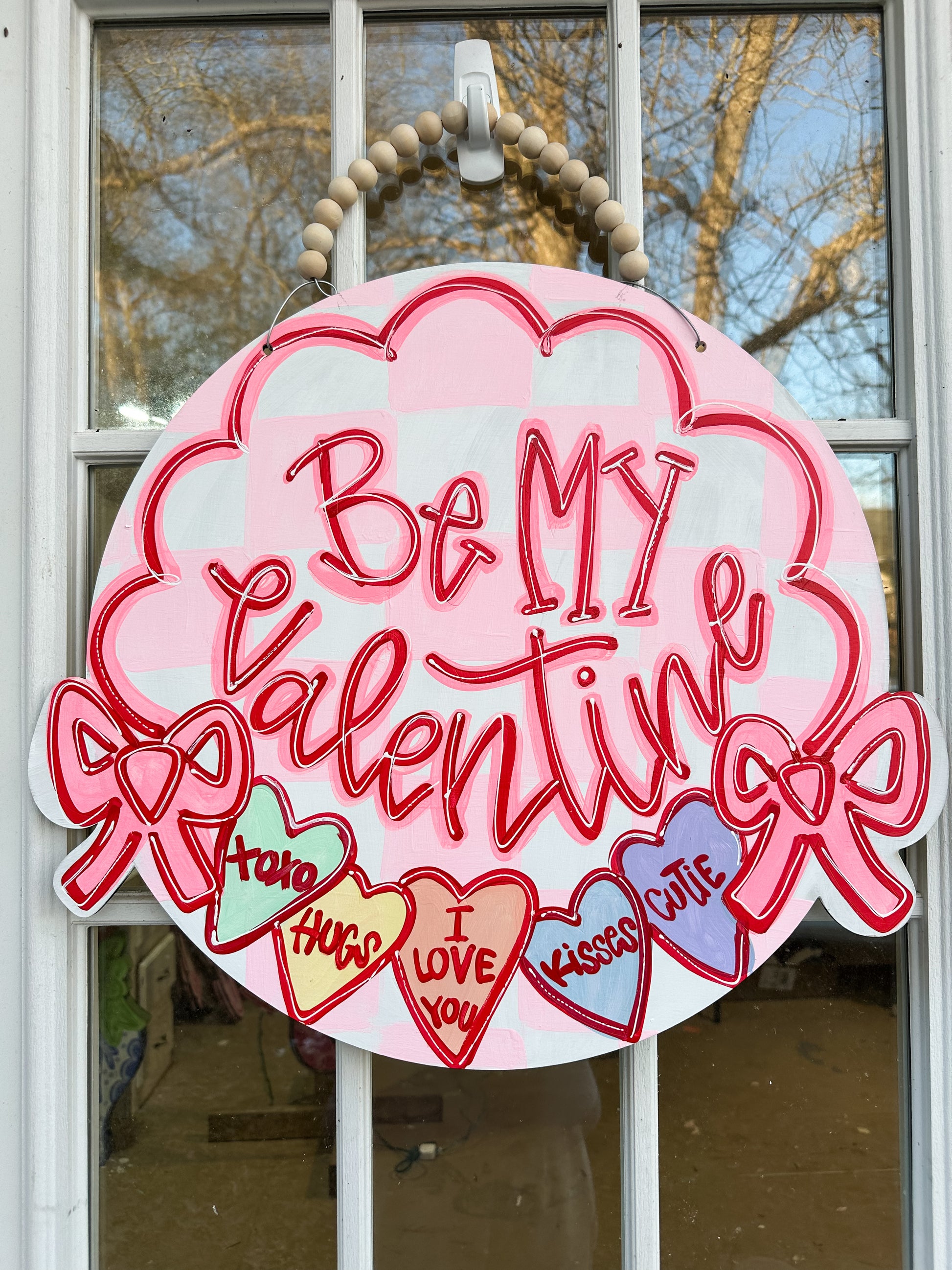 Laser cut, hand painted. Bow included. Beaded hanger included. Clear coat sealed.