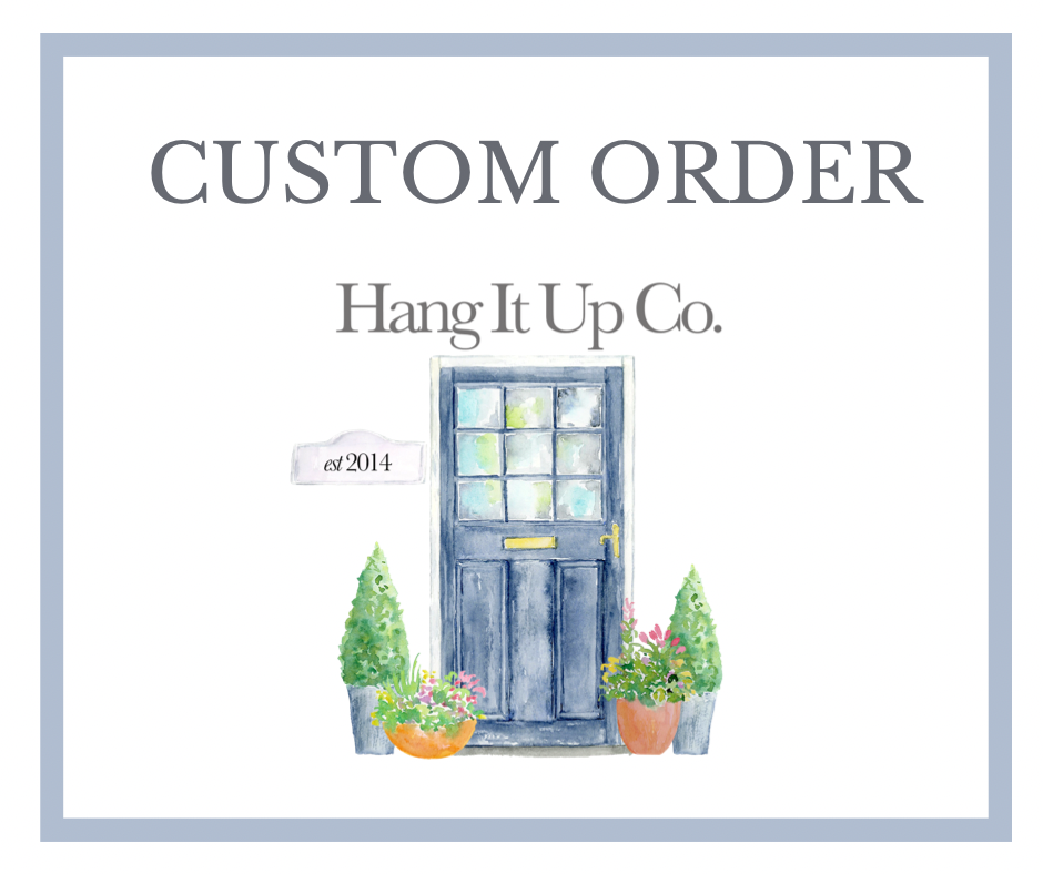Please email Hangitupdesignsco@yahoo.com to discuss custom hanger design. Once design has been confirmed you will be redirected back to this product option and asked to purchase before your hanger will be made.
