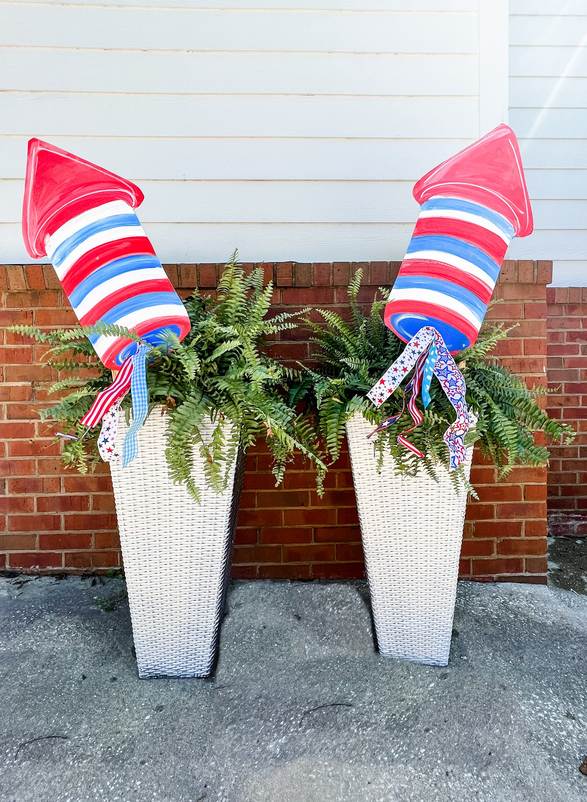 These are not preassembled. Hand cut and hand painted. Clear coat on front and back to lock and protect from moisture. Please note: these stakes are made of wood. Leaving them in an uncovered area makes them more prone to damage. I high recommend keeping them on a covered porch. Decorate at your own risk :) These stand approximately 36 in tall from the bottom of the stack to the top of the shape. 13-15 inches wide. Ribbon attached by wire to bottom of the shape. Ready for pickup may 24th, shipped that evening.Â