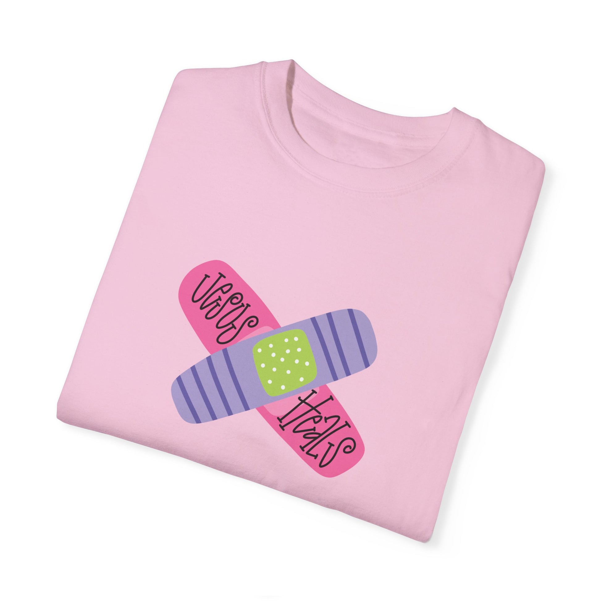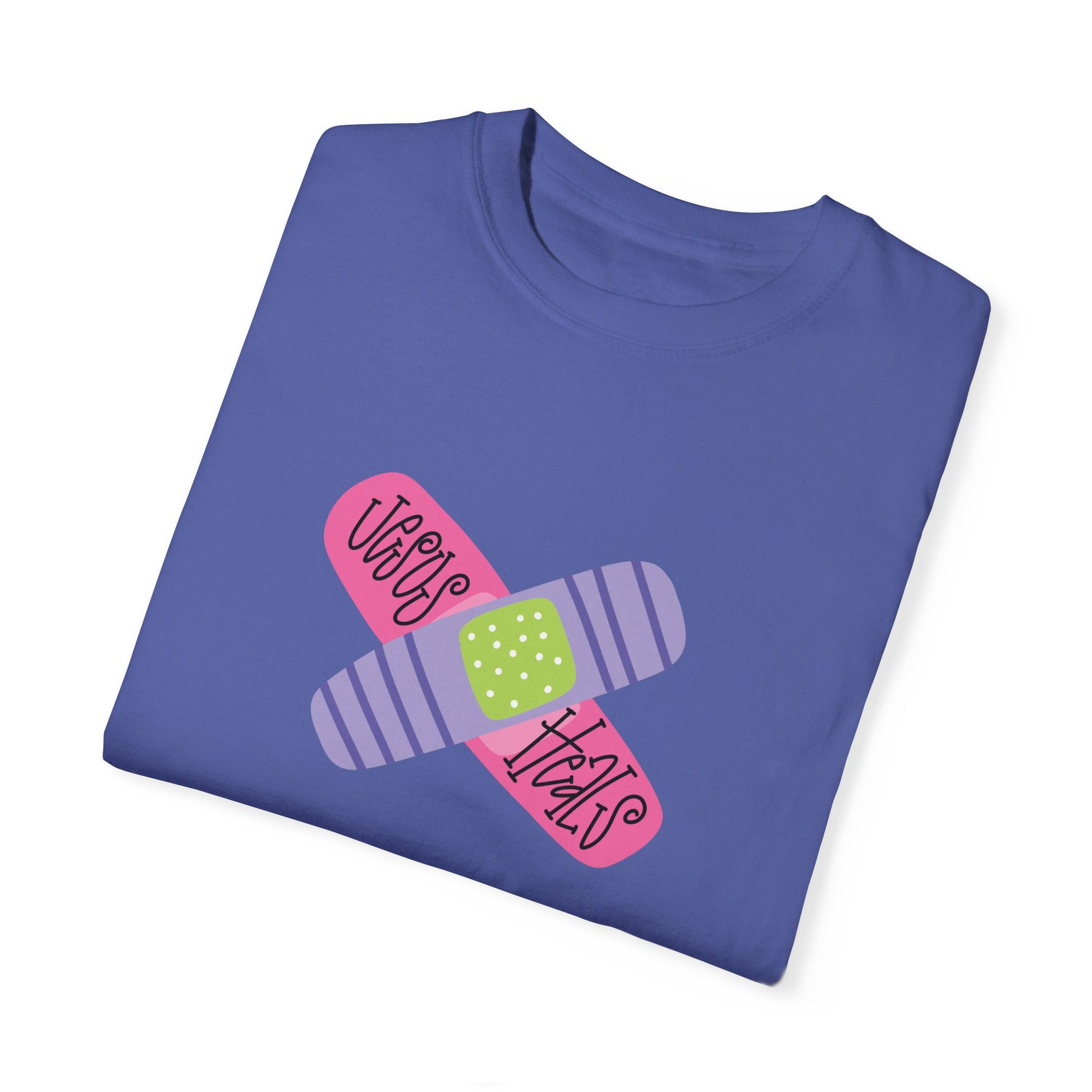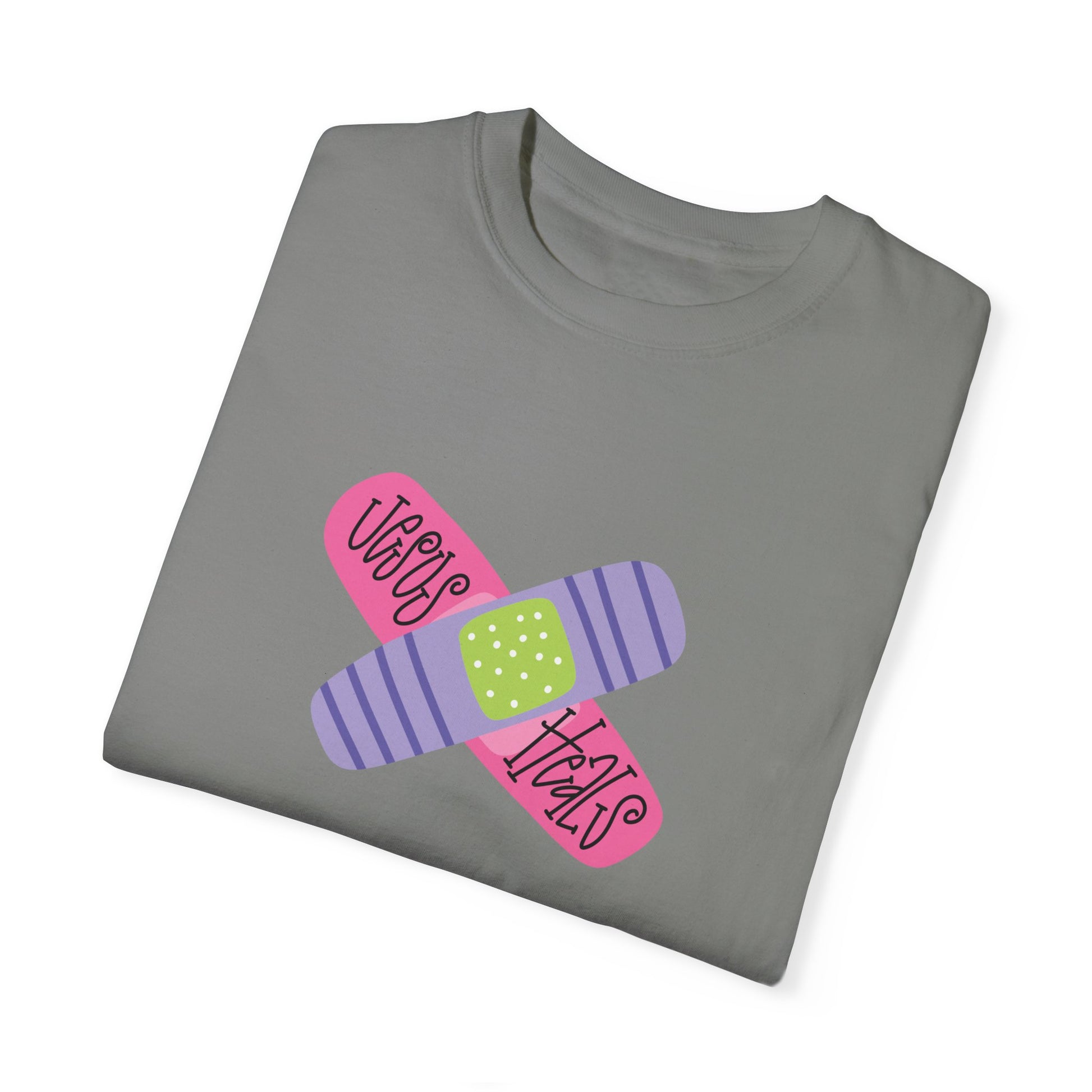 Garment-Dyed T-Shirt - "Jesus Heals" Bandage Design - Fun Graphic Tee for Health Enthusiasts