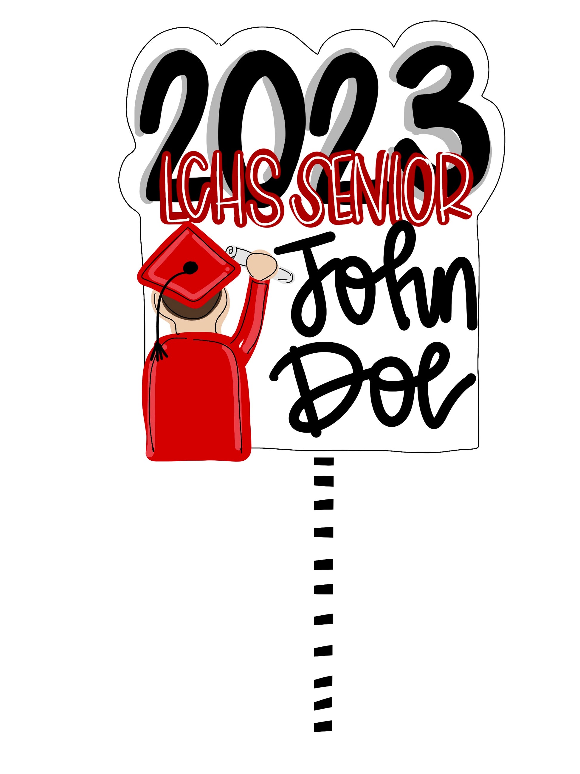 How cute would this stake be by the road with balloons on graduation day?!? These will measure approximately 20 in long and 15 in wide. Hand painted, hand cut. Sealed with clear coat. No bow included. Hanger will be drilled with two screws to 32 inch yard stake. Please note this is made out of wood so please avoid keeping it out with inclement weather. This artist is not responsible for weather related damage.