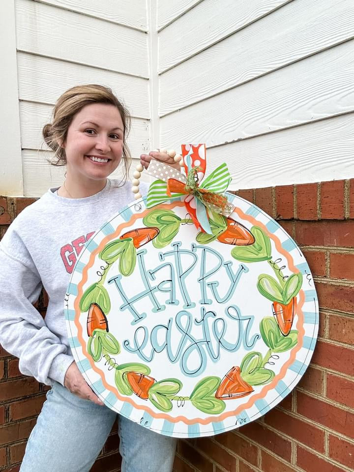 22 inch circle. Hand painted. Bow and beads included.