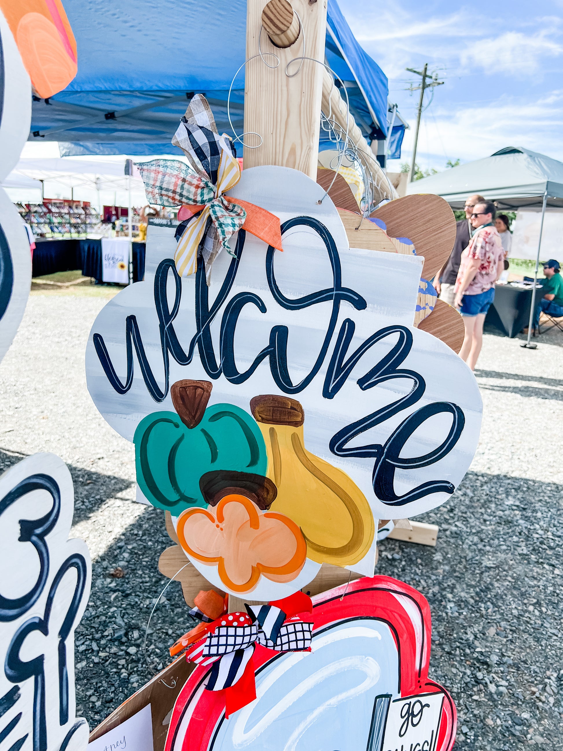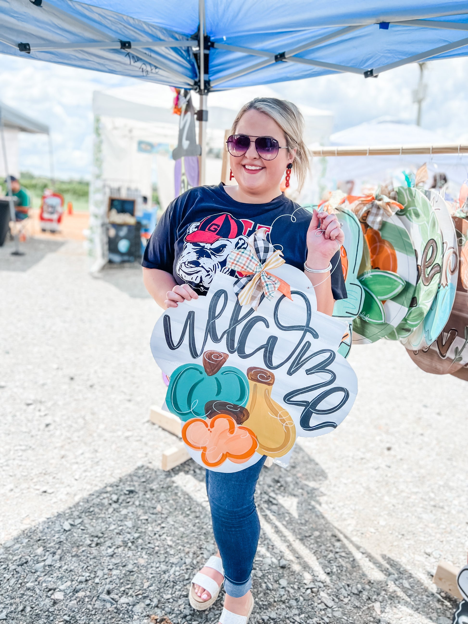 Oh my gourd! So glad you’re here! We can’t wait to see this cutie on your door! She measures approximately 24x24in.
