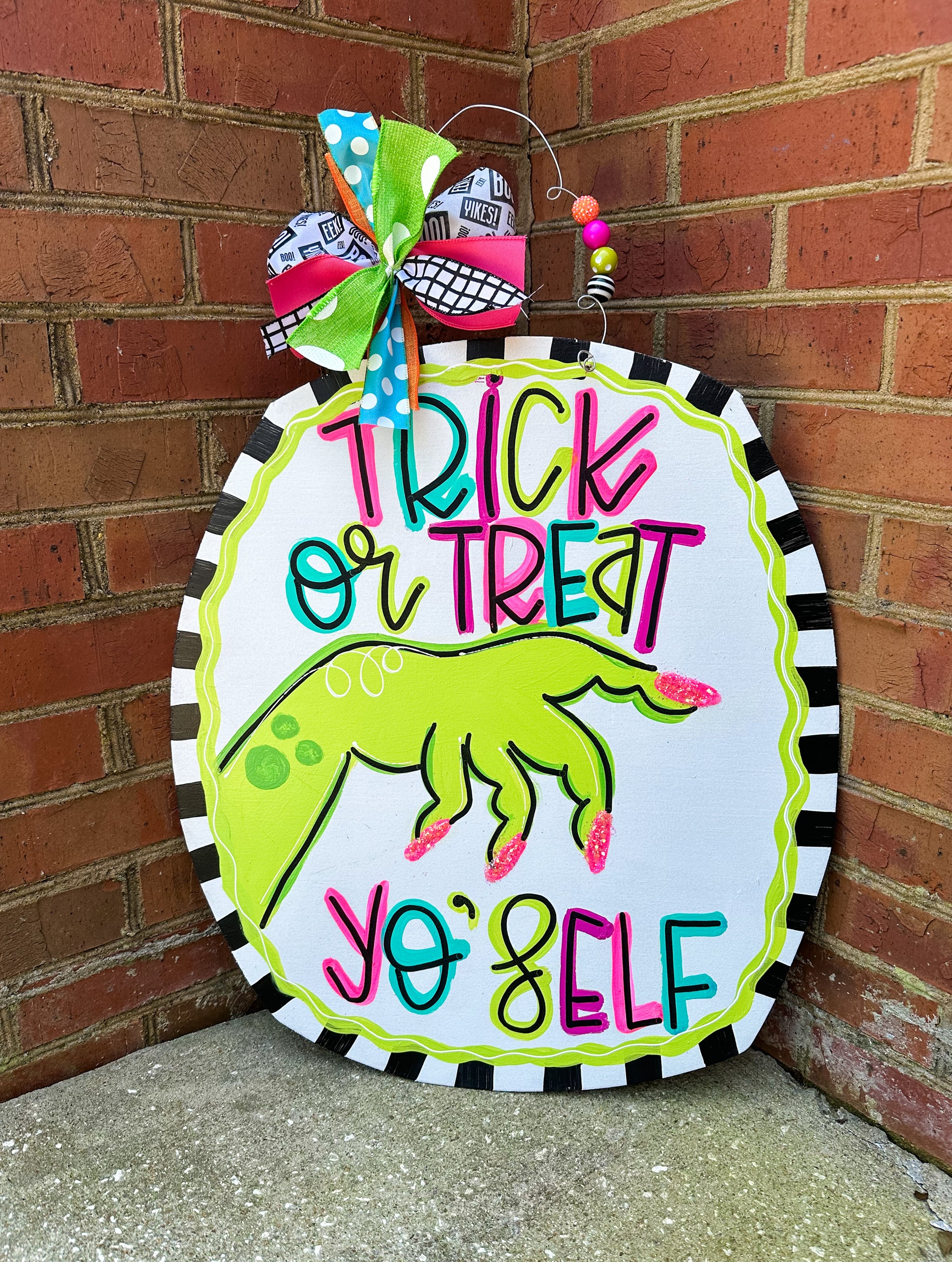 24x26. Hand painted. Includes glitter. Beads and bow.