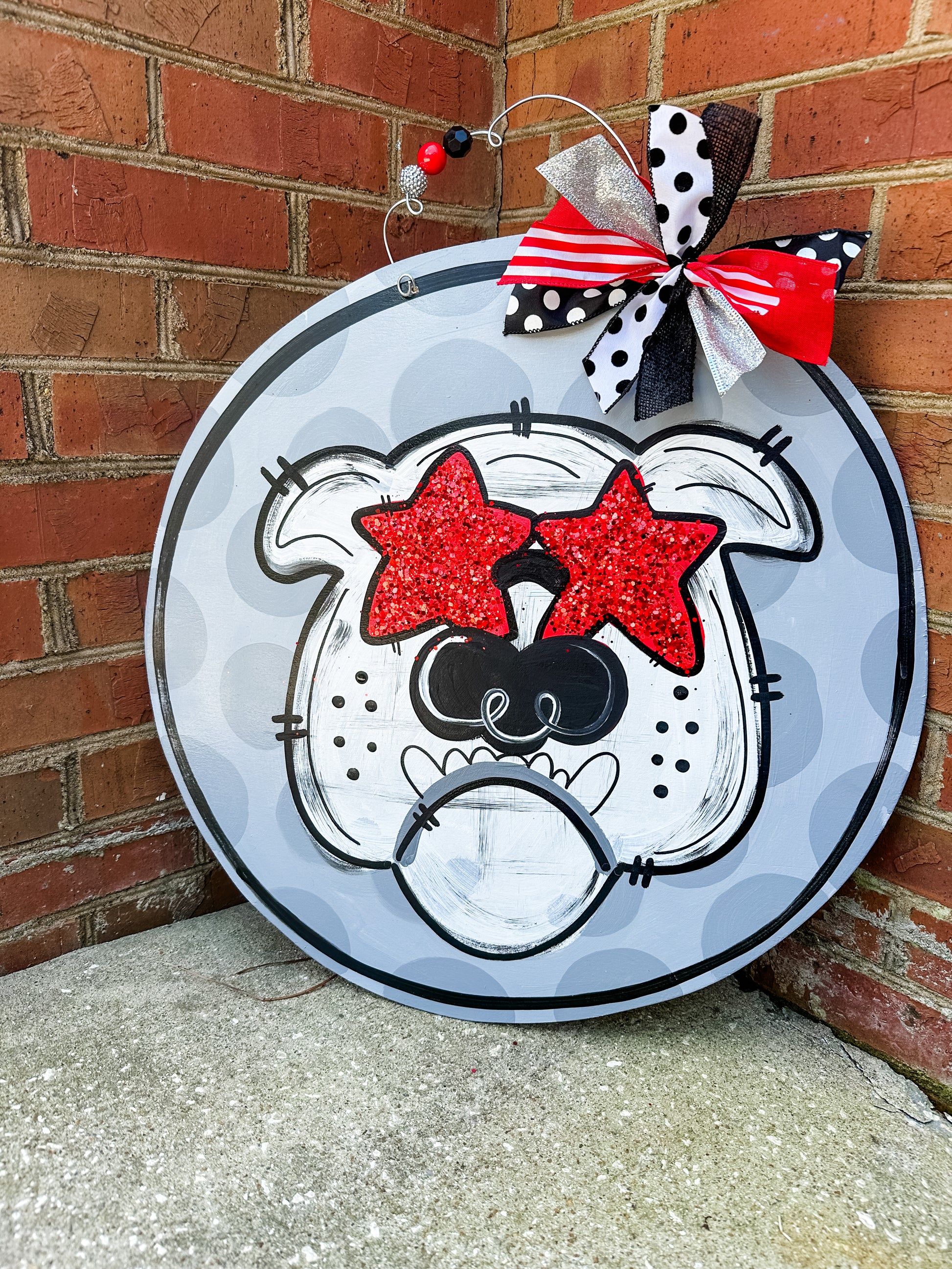 Glitter eyes. Hand cute hand painted. Beads and bow included.