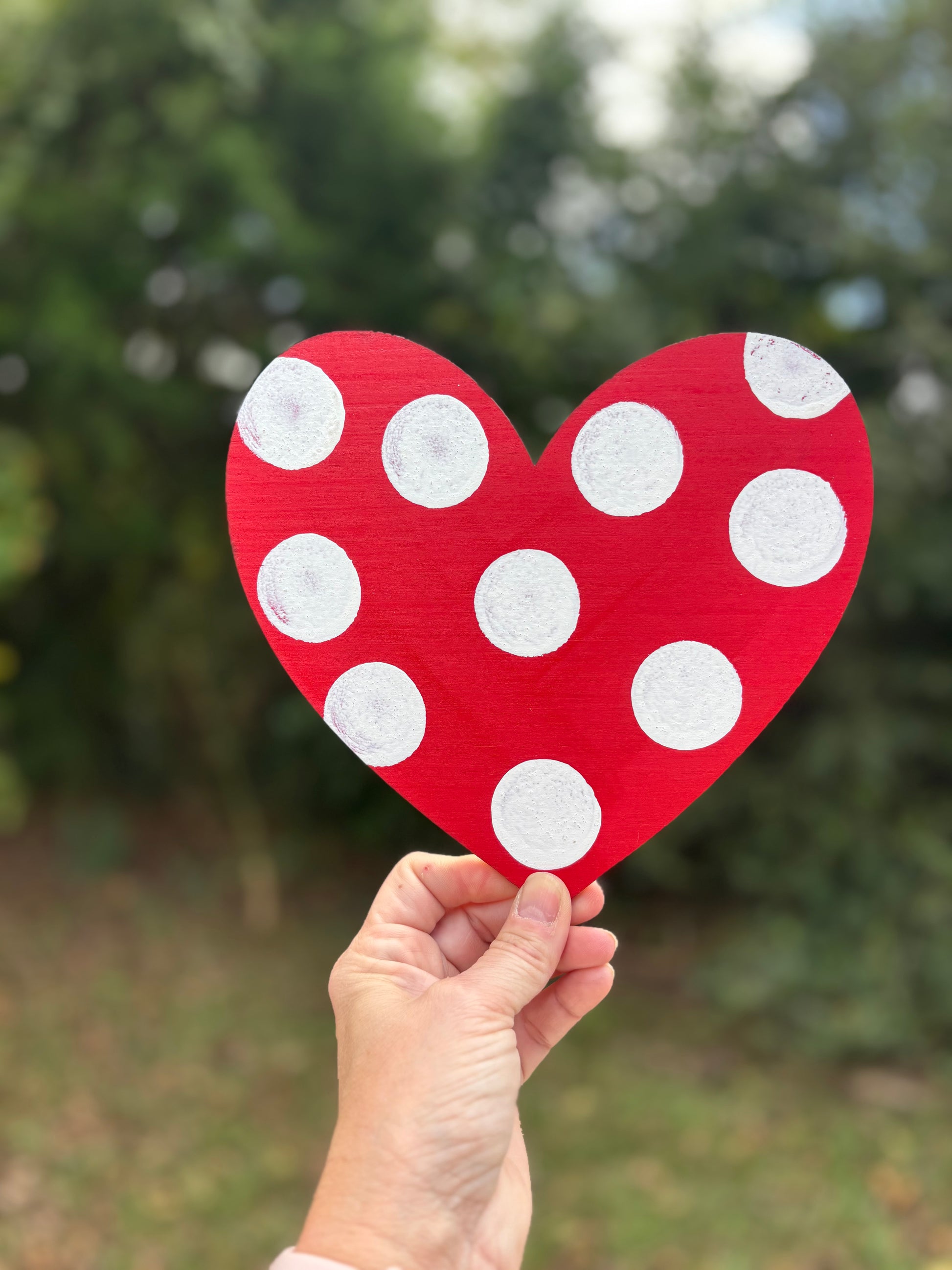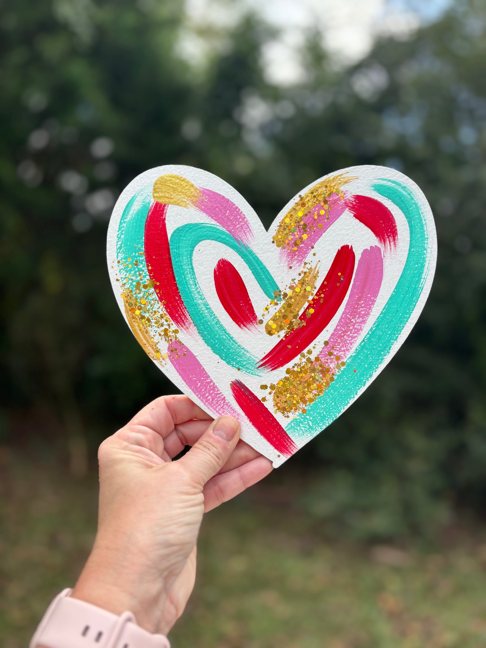 8 inch Valentines shapes. Hand painted. Loose glitter applied. Soft side Velcro on back.