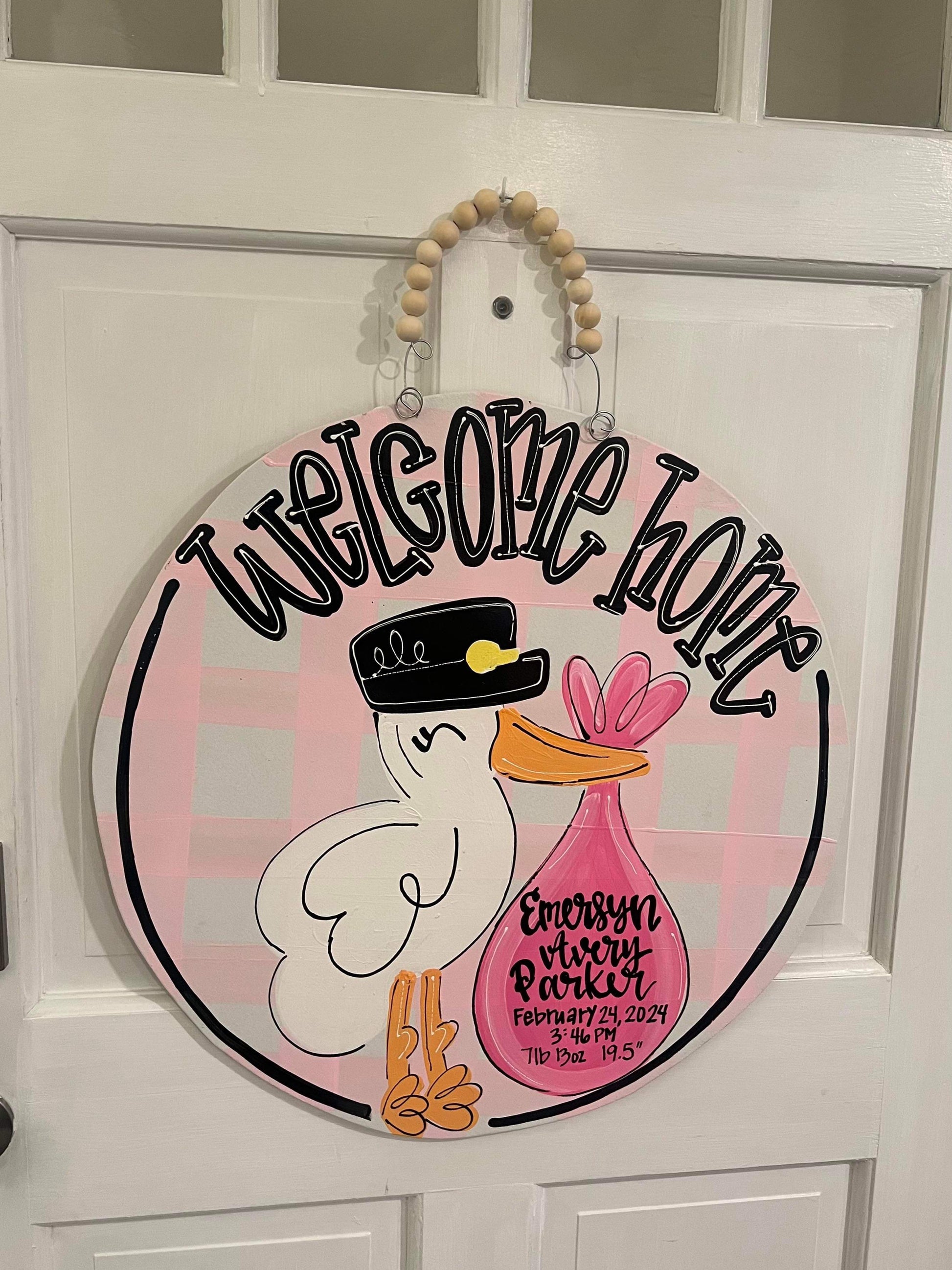 If this is a present I will write name and then “ date: , time: , weight: , height: , “ for you to fill in at a later date. Hand painted and double sealed for protection against the elements.