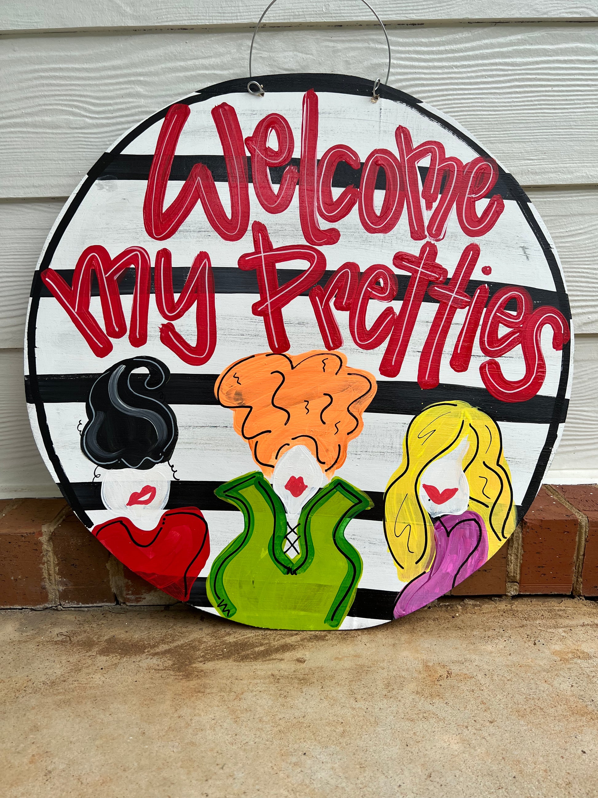 It’s just a bunch of hocus locus right? I love the colors and characters of this hanger! If you want spooky vibes, this is it. This hanger measures approximately 24x24in.